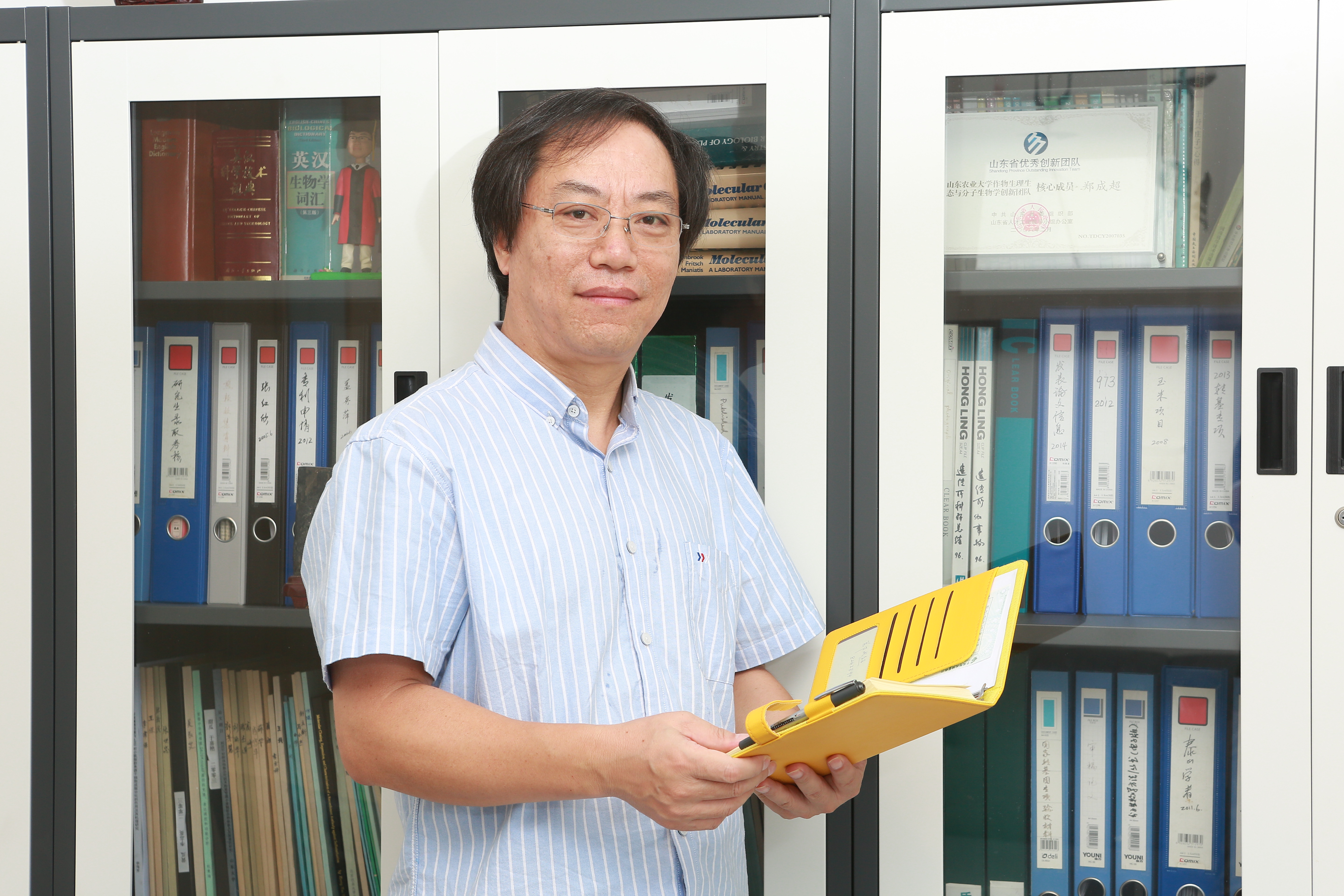 郑成超,博士,教授,博士生导师。现任作物生物学国家重点实验室副主任。2002年至2018年任生命科学学院院长。2004年入选国家“新世纪百千万人才工程”国家级人才,2007年入选教育部“长江学者创新团队”带头人,2008年入选山东省有突出贡献的中青年专家,2012年入选泰山学者特聘教授。《植物学报》、《农业生物技术学报》编委。1982年毕业于山东农业大学留校任教至今,先后获山东农业大学农学硕士和中国农业大学理学博士学位。1989年赴丹麦哥本哈根研修种子技术,1992年至1996年赴美国加利福尼亚大学戴维斯分校植物生物学系留学,主要从事植物分子生物学方面的研究。2001年赴美国北卡罗莱纳大学合作研究, 主要进行了转基因表达调控的研究。围绕植物抗逆性的分子调控,近年来主持承担了国家“863”、国家“973”、国家转基因植物研究专项和国家自然科学基金等多项课题。在《Molecular Cell》、《Nucleic Acids Research》、《Plant Physiology》和《中国科学》等国内外著名学术刊物上发表论文80多篇。“植物应答温度和高盐胁迫基因的挖掘和调控机制研究”获2015年山东省自然科学二等奖。 | ||