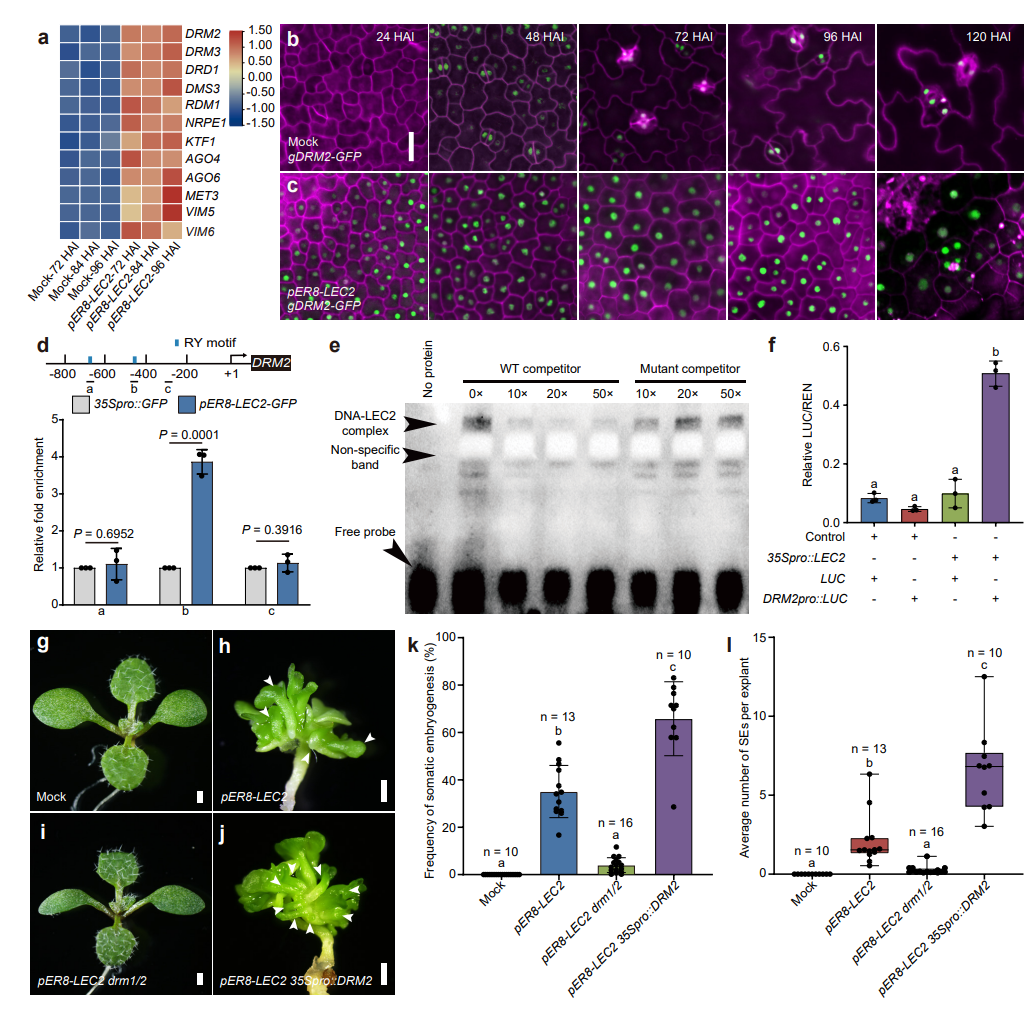 DRM2/RdDM通路对于LEC2诱导的体细胞胚胎发生至关重要