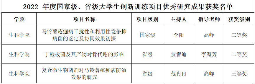 生科学子荣获2022年度国家级、省级大学生创新训练项目优秀研究成果奖